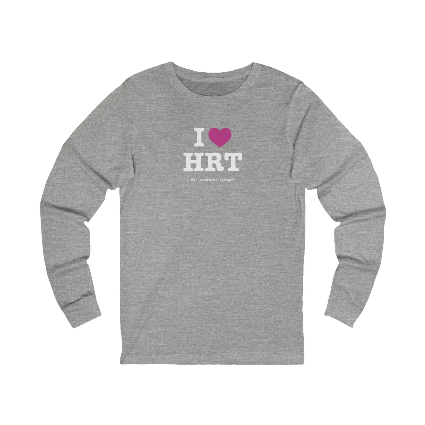Slip into our 100% cotton "I Heart HRT" Long-Sleeved Tee and let the world know you've found your true love in Hormone Replacement Therapy. This isn't just a shirt; it's a wearable testament to the fact that you've reached the stage where "natural" isn't always better, especially when it comes to your hormones. Embrace this phase, wear your heart on your sleeve, or rather, your love for HRT on your chest, and show that you're not just surviving; you're mastering the art of hormonal harmony.