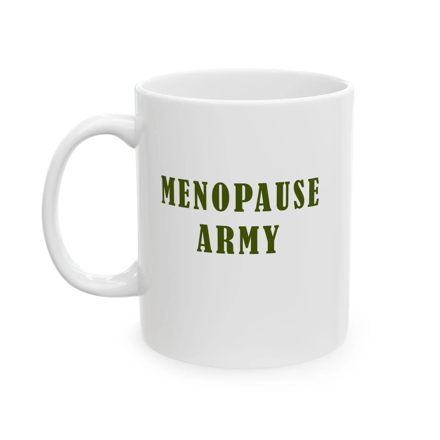 Our "Menopause Army" Mug is a ceramic tribute to the battle-hardened warriors of hormonal upheaval. Dishwasher and microwave safe, it is your own badge of honor. Sip, soldier on, and conquer menopause with caffeine-fueled resolve.