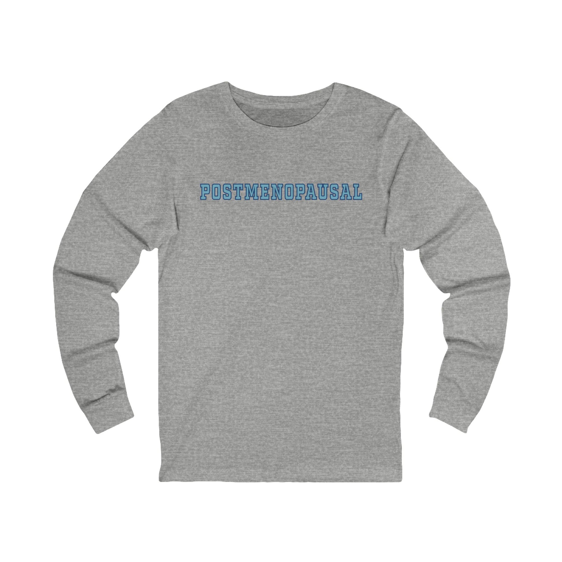 Wear our "Postmenopausal" Long-Sleeved Tee and wear your journey like a badge of honor. This is your declaration that you've made it through the hormonal odyssey with grace and humor. It's a reminder that you're shining. Wear it proudly; you've earned it.