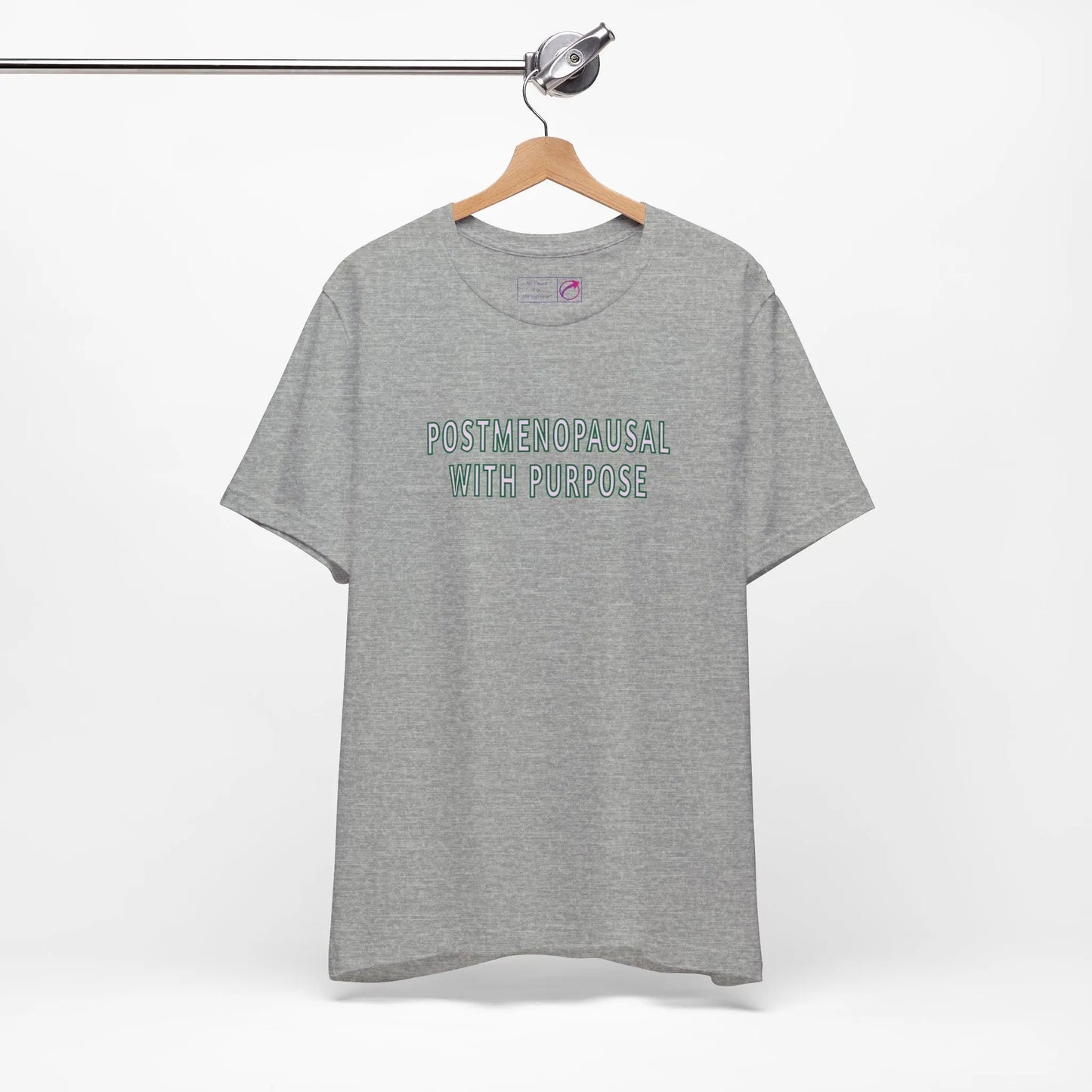 Introducing the "Postmenopausal With Purpose" Unisex Tee. This shirt is for the woman who's realized that, with menopause out of the way, the only thing left to conquer is... well, everything. This classic unisex jersey short sleeve tee fits like a well-loved favorite. The unisex design suits a variety of body shapes, including curvy bodies.